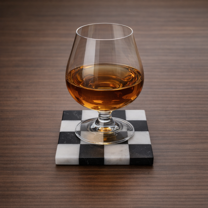 Sous verre « damier » en marbre blanc et noir
